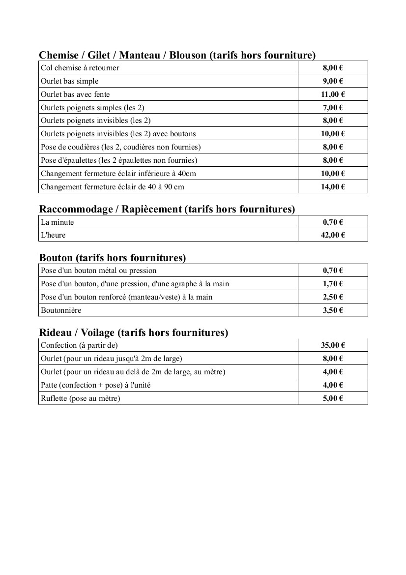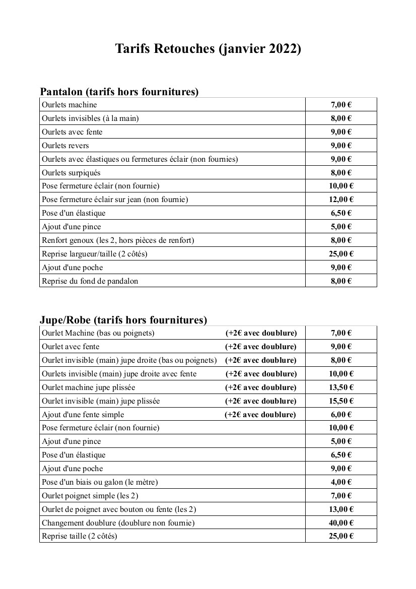 Nouveaux tarifs